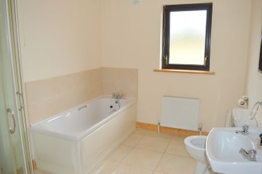 Bathroom: c.2.9m x c.2.3m with wc, whb, shower, bath, floor and wall tiling.